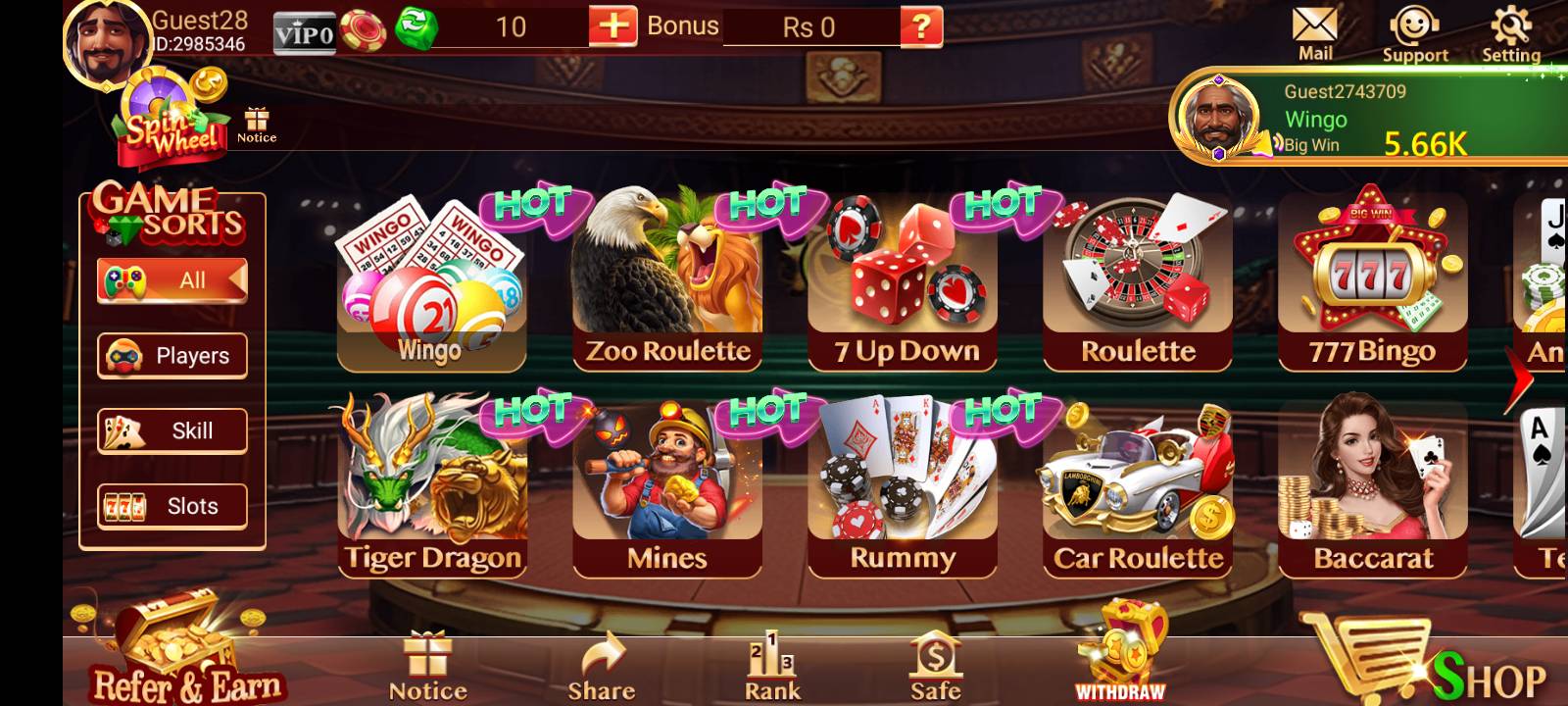 The app offers more than 20 exciting games, such as Teen Patti, Rummy, Dragon vs Tiger, Andar Bahar, Poker, and Roulette. This variety ensures that every player finds something that suits their taste and skills.