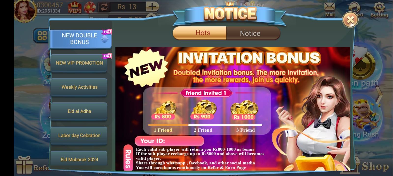 3 Patti Golden offers various reward systems including: