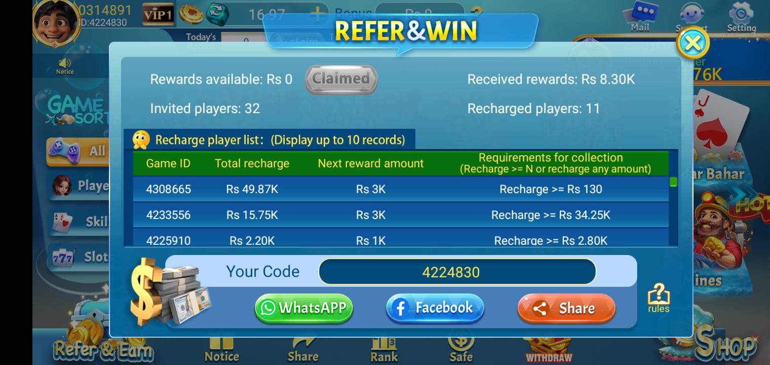 New players receive a welcome bonus immediately after registering. Existing users can claim daily login bonuses, referral commissions, VIP rewards, and festival promotions. These incentives make every login rewarding and help players earn more without additional investment.
